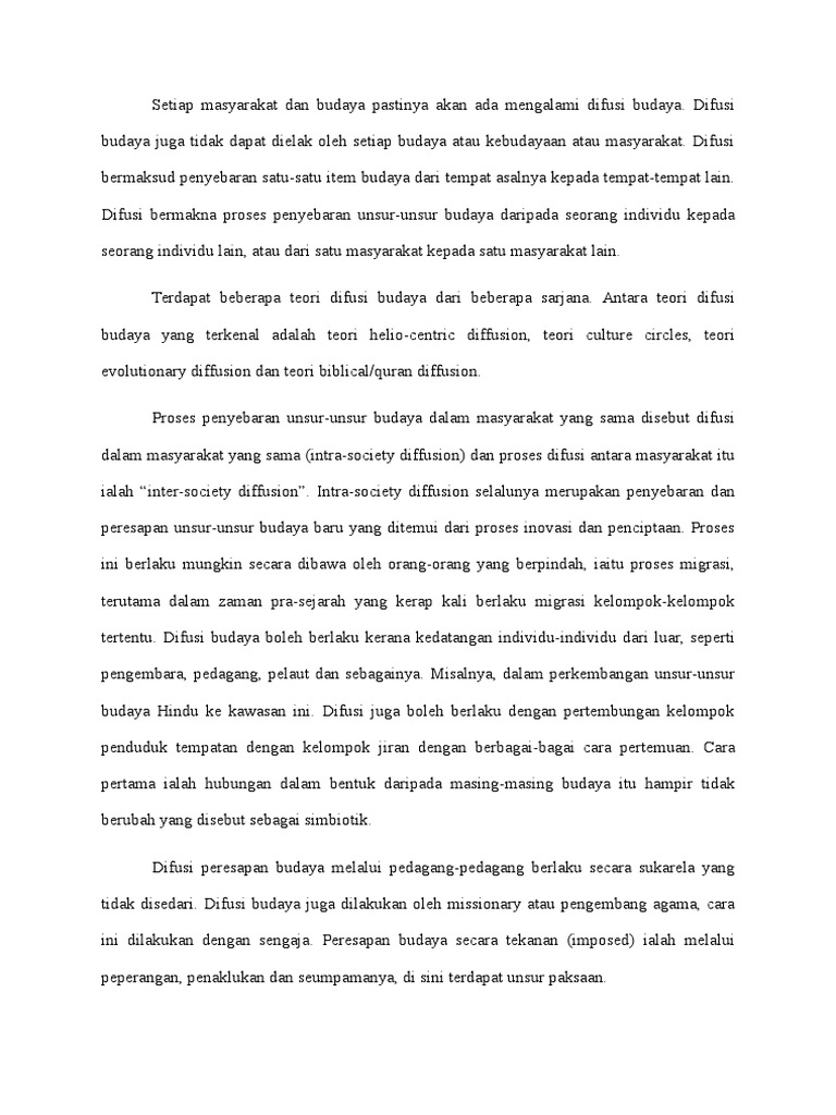 Difusi Budaya Dan Akulturasi Budaya Di Malaysia Pdf