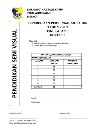Soalan Peperiksaan Akhir Tahun 2019 Tingkatan 2 Pendidikan Seni Visual