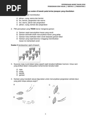 Download as PPTX PDF TXT or read online from Scribd. Save Save Soalan Pendidikan Seni Visual untuk Tingkatan 2 For Later 91 91 found this document useful Mark this document as useful 9 9 found this document not useful Mark this document as not useful. Soalan Pendidikan Seni Visual Tingkatan 2 Kertas 1.